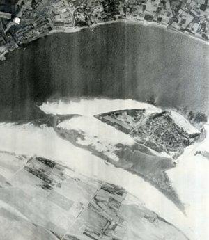 ▲ 1962년에 촬영된 한강 밤섬의 항공사진. 당시엔 밤섬에 주민들이 거주했다. ⓒ서울시