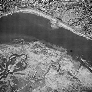 ▲ 1972년의 항공사진에서는 밤섬이 물에 잠겨 잘 보이지 않는다. ⓒ서울시