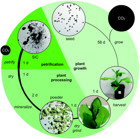 최근 생화학자들은 탄화규소를 얻기 위해 식물에 눈을 돌렸다. 미국 솔크(Salk) 생물학 연구소 연구진은 “식물을 가공해 산업에 쓰이는 탄화규소(SiC)로 만들고, 대기 중 온실가스를 줄이는 일석이조의 시스템을 제안한다”라고 밝혔다. 논문은 영국 왕립화학학회 어드밴시스(Royal Society of Chemistry Advances)지에 실렸다.