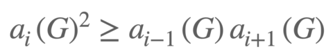 참고로, 양수인 실수로 이루어져 있으며 작은 수로부터 시작하여 정점에 도달한 후 줄어들기 시작하는 수열이(줄어들다가 다시 커지지 않고 단 하나의 정점만 존재, 즉 봉우리가 하나인 수열: 아래로 오목한 곡선 혹은 단봉 unimodal 이라고 부름) 로그를 취했을 때, 다시 이런 수열이 된다면 ‘로그 오목성(log-concavity)’을 띈다고 한다. 즉, 로그-오목은 특정 부등식(아래)이 모든 i에 대해 성립하는지 묻는 것을 말하는 것이다.