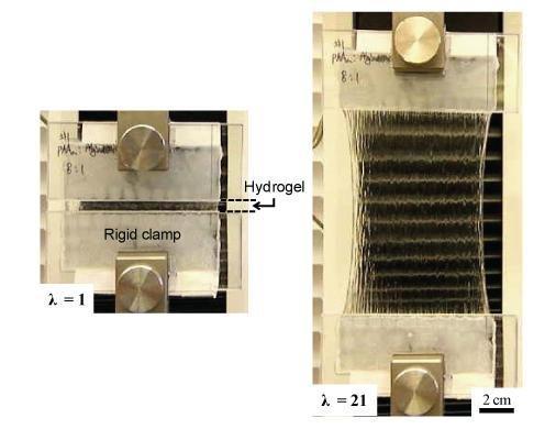 물과 해초추출성분을 이용해 21배 이상 늘어날 수 있는 신축성있는 소재, 하이드로젤(Hydrogel)이 개발됐다.