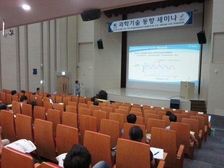 이 교수는 <과학기술과 음악의 융합>이라는 주제로 강연을 진행했다. 그는 소리와 음악의 기초에 대해 언급한 후, 과학기술과 음악 융합의 의의, 과학기술과 음악의 융합 사례 등을 중심으로 설명을 이어나갔다.