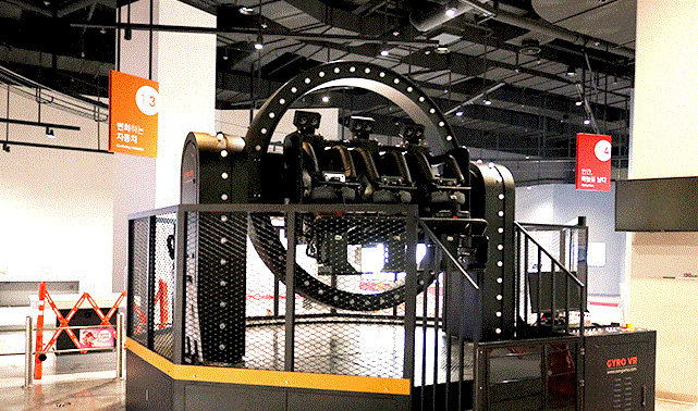 관람객에게 가장 인기 있는 ‘자이로스코프’ 체험도 자동차·항공우주관에서 가능하다. ‘자이로스코프’를 타고 가상현실(VR) 기술로 짜릿한 우주여행을 체험해볼 수 있다.