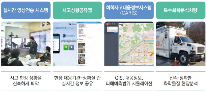 첫 번째 업무인 화학사고 및 테러대응은 화학물질 관리 및 화학사고, 그리고 화학테러에 대비하기 위한 전문기술과 인력을 제공하는 것이다.