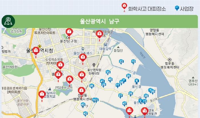 바로 환경부 소속 기관인 화학물질안전원(NICS)이 제작한 지도로서, 이 지도만 있으면 화학사고가 발생했다 하더라도 주민들은 언제든지 안전한 대피 장소를 찾을 수 있다. ‘화학사고 대피장소 안내지도’라는 이 지도에는 전국 530여 곳의 화학사고 대피장소 현황과 화학사고 발생 시 행동요령 등 각종 정보 등이 포함되어 있다.